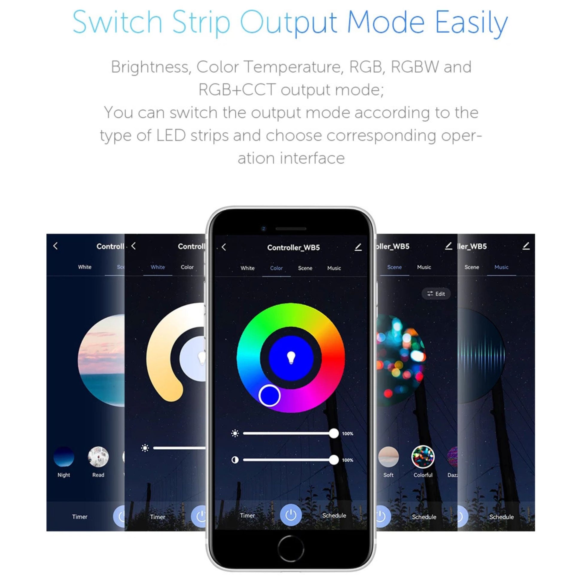 - Adjust colors and brightness exactly how you want: Supports RGB, RGBW, CCT and RGBCCT LED strips