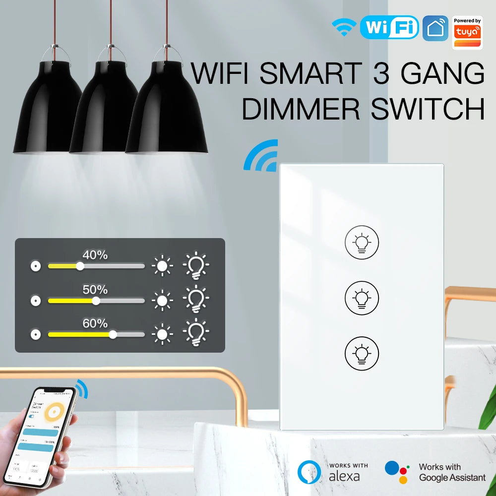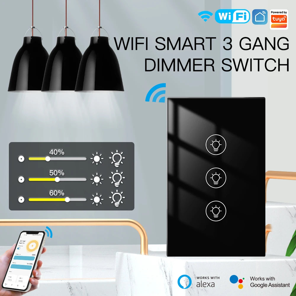 - Features: Multi-gang, dimming, app & voice control, schedule support