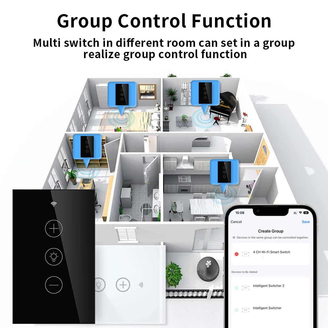 🏠 Group Control: Manage multiple dimmer switches in different rooms at once with one tap in the app.