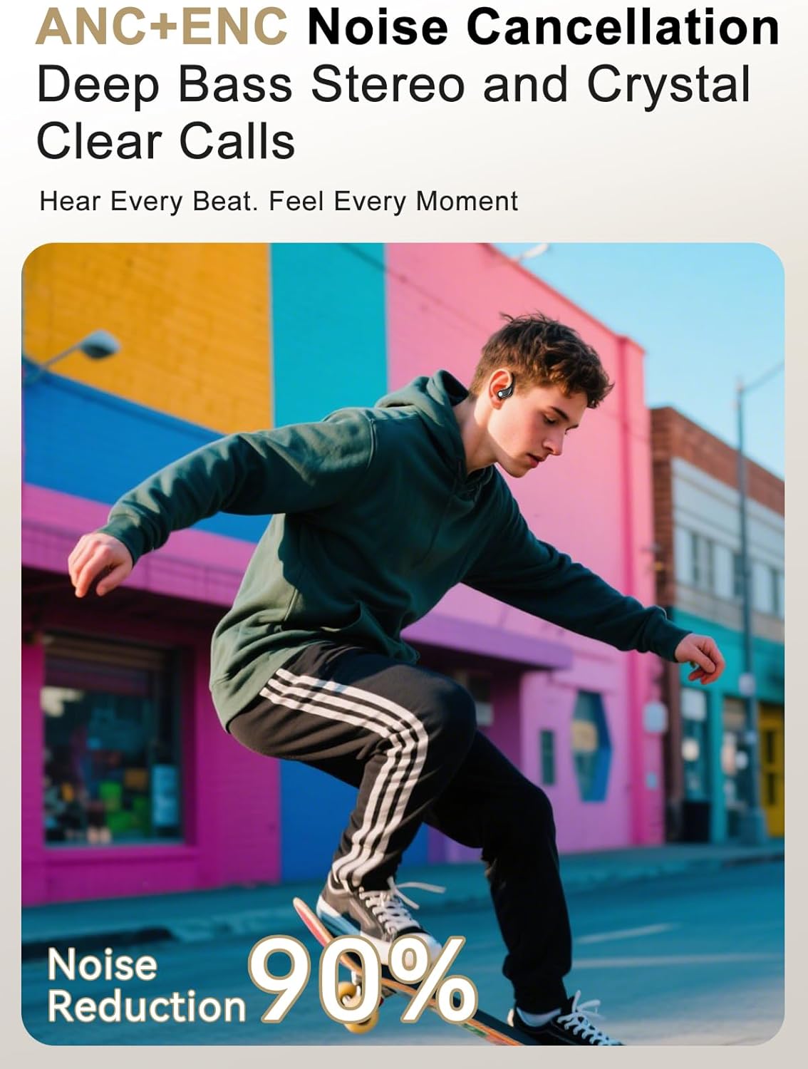 🔇 ANC + ENC Noise Control: Adaptive ANC blocks distractions during workouts, while ENC ensures your voice stays crystal clear during calls—even in busy Tobago cafés or noisy streets.